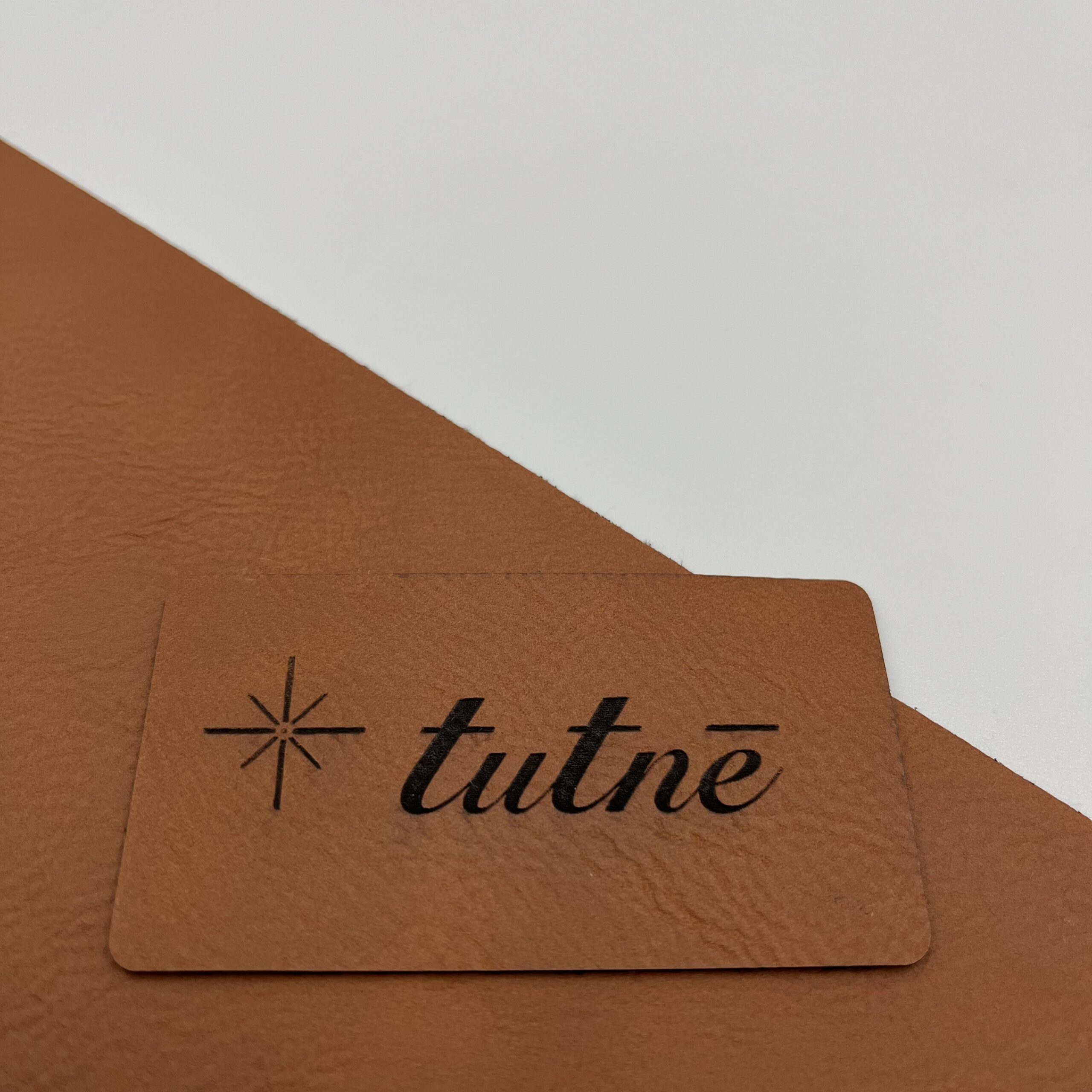 Metka z syntetycznej skóry została stworzona poprzez precyzyjne wygrawerowanie logo, nadając jej elegancki i trwały charakter, idealny do ozdabiania produktów wysokiej jakości.