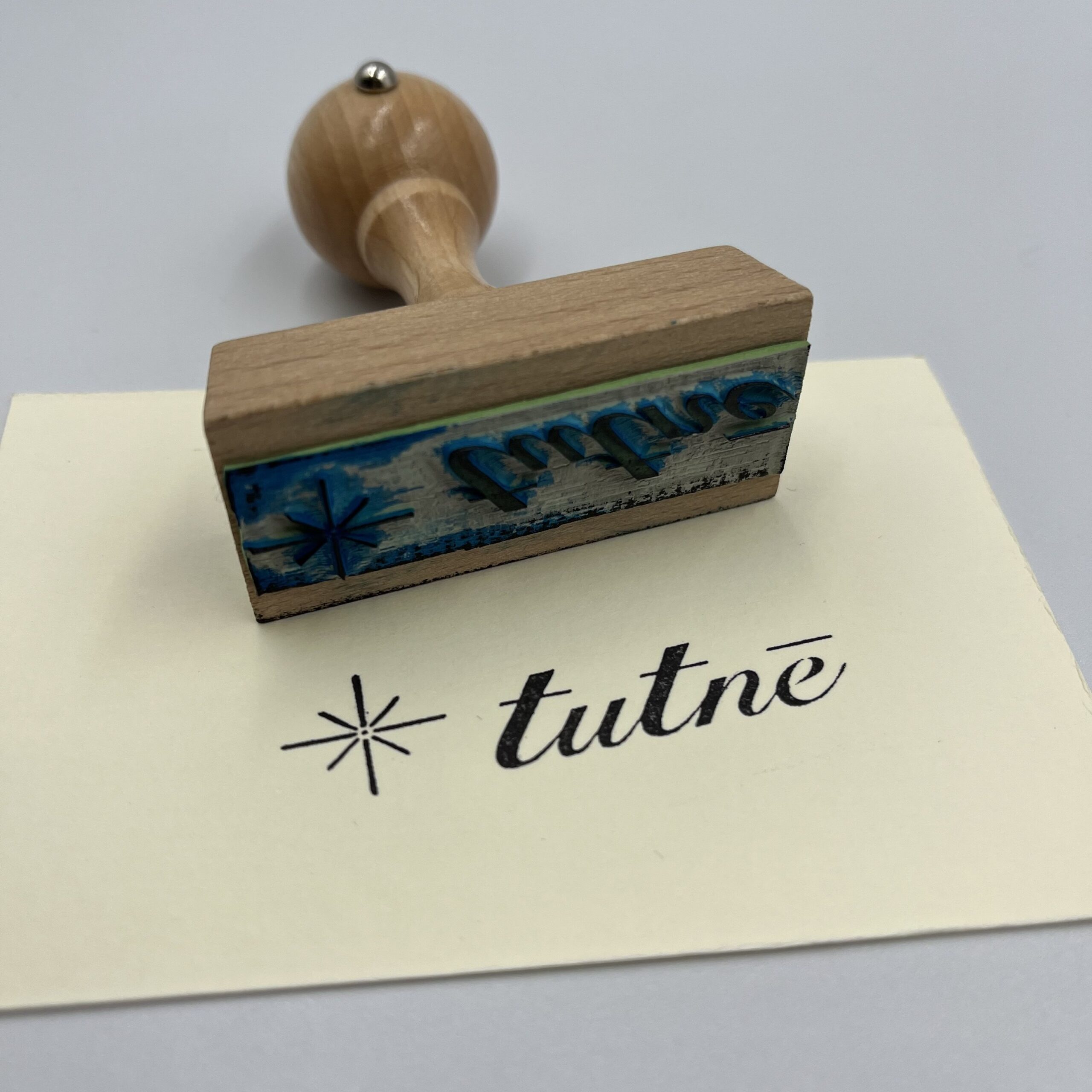Stempel z logo został wykonany przez grawerowanie precyzyjnego wzoru na specjalnej gumie, umożliwiając piękne i indywidualne oznaczanie dokumentów czy przedmiotów lub książek.